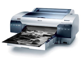 The unique Epson UltraChrome K3 ink technology gives you the ultimate in black & white and colour printing. While other ink sets have just one black, the Epson UltraChrome K3 range has three black inks, for unmatched image quality. With fast print speeds, media flexibility and low running costs, the new Epson Staylus Pro series is the first choice for the professional imaging business. The new Stylus PRO 4800 printer is able to print colour proofs up to contract quality and features improved tonal gradation and improved gloss differential. Furthermore the mechanical difference of the new Stylus PRO 4800 between units is so small that this printer will be the printer of choice for a remote proofing system. Introducing the third black ink With three black inks, the Epson UltraChrome K3 ink set marks a revolution in printer technology. The Epson Stylus Pro range gives you excellent grey balance for both black & white and colour printing, along with an extremely wide colour gamut, improved black density and highly accurate colour reproduction. Whatever your choice of media, our Epson UltraChrome K3 inks will deliver high quality prints that look superb in any lighting conditions, every time. And with excellent colour stability and outstanding durability, you will get results that look great for years to come. The Epson UltraChrome K3, 8-colour ink set, with interchangeable Photo and Matte Black inks, has also been designed for ease of use, giving fast, reliable and cost-effective printing. For fine art galleries and artists, our Epson Stylus Pro printers provide exciting new opportunities. They will produce the ultimate black & white & colour prints of any size on a wide range of materials, and with excellent consistency and longevity up to 75 years in colour and over 100 years in black & white*, they are your ideal solution. Key Features